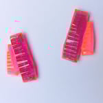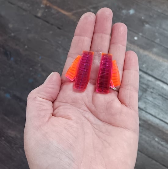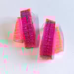 An intense vibrant pink that fluoresces orange on the cut edge paired with dark pink